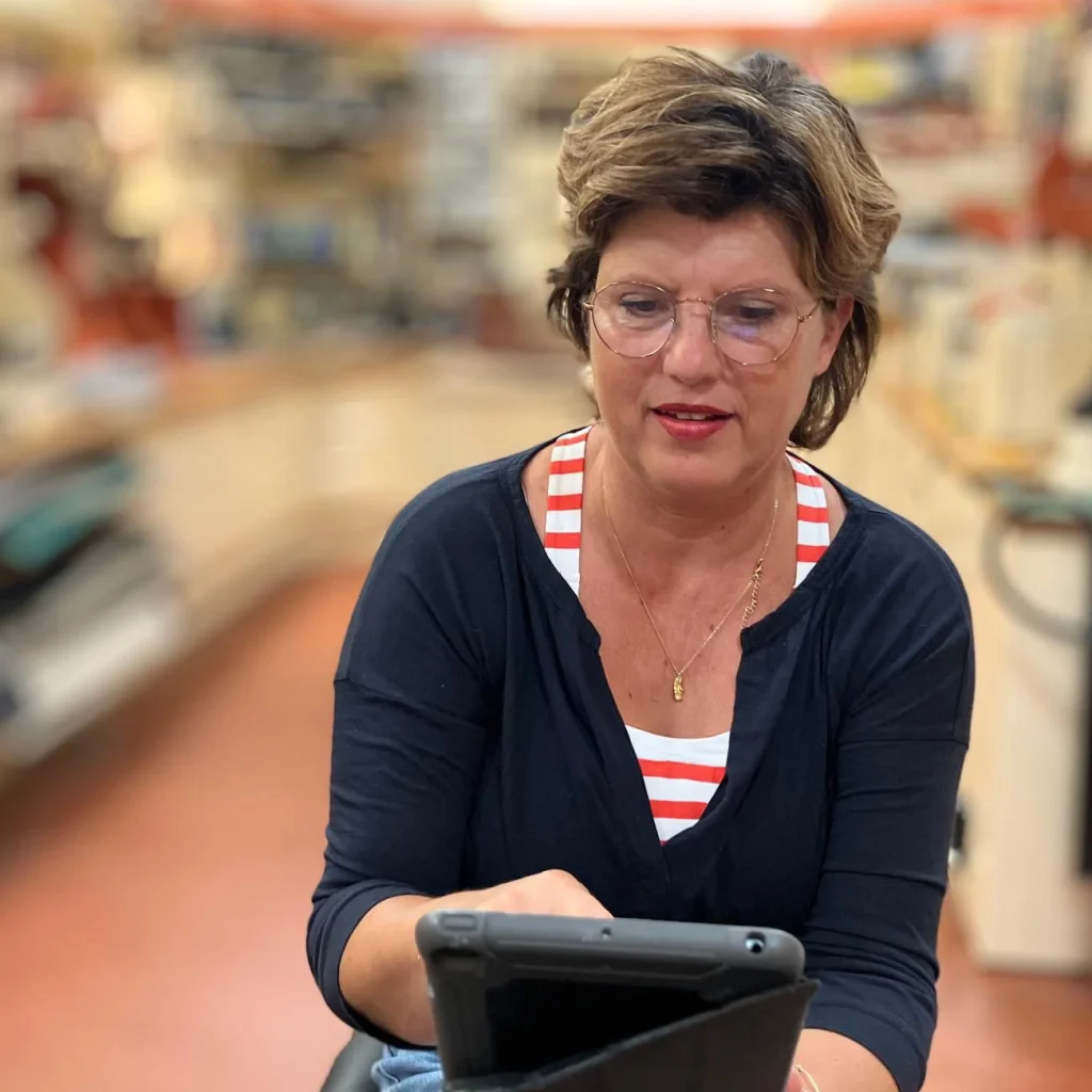 Evelien takes care of customer contact and socials. You can drop your shoes off at our shop/workshop, and we will discuss options together, or you can send them in. Please include a note with name, address and phone number so we can be in touch about your wishes!